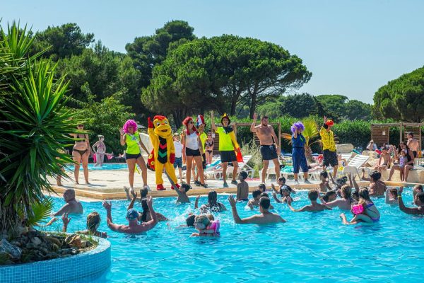 Groot zwembad met glijbanen, Een echte waterval, Langzaam aflopend strand op 900 m, Waterratten de hele dag zoet, Groene omgeving, Animatie voor jong en oud