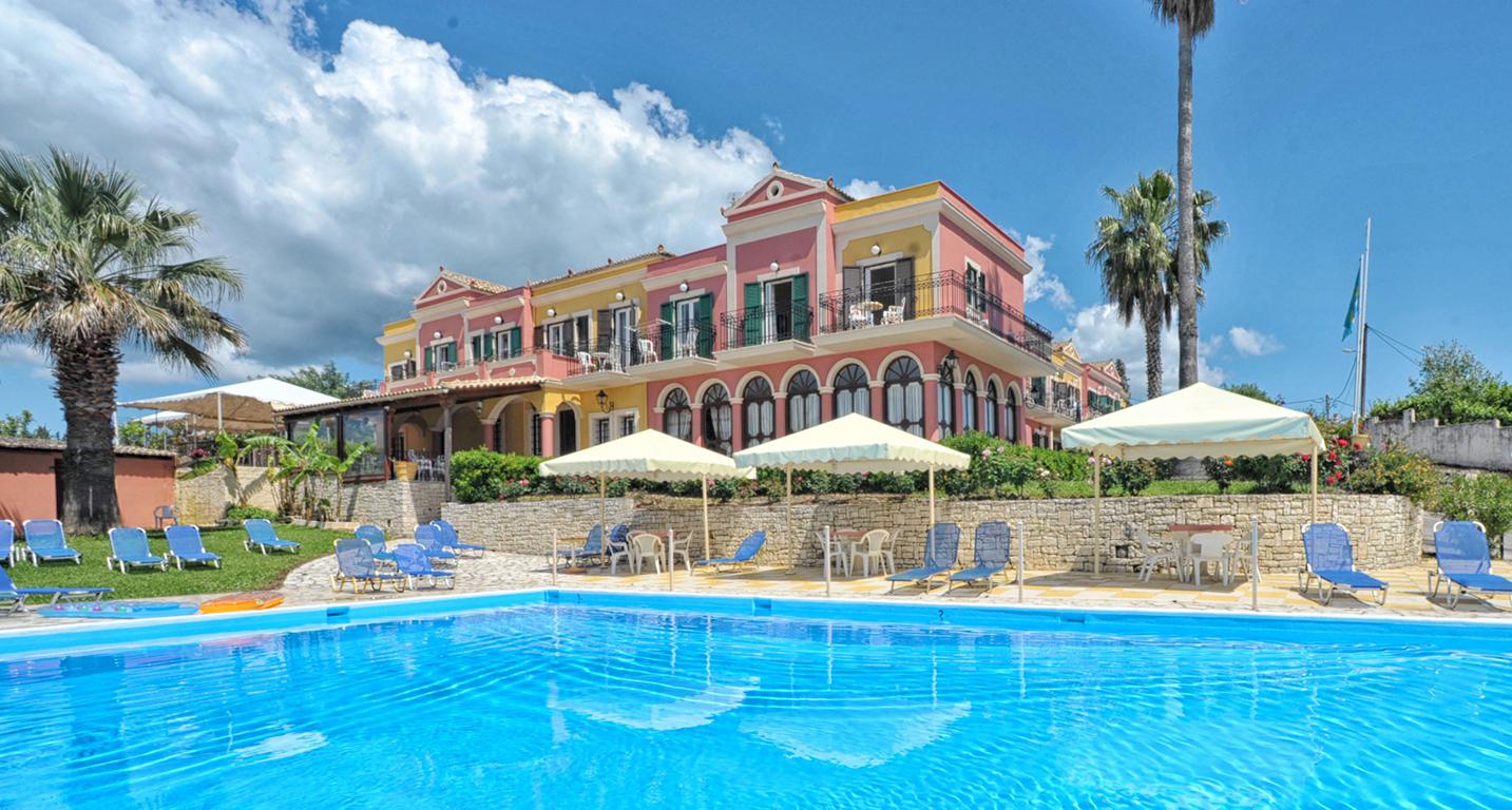 De roze en geel gekleurde muren van de knusse appartementen, geven het geheel een zeer kleurrijke uitstraling. De imposante palmbomen die midden in verzorgde tuin staan, voegen hier ook nog eens een flinke dosis zomerkriebels aan toe. Het zwembad en de ligbedjes zien er heel uitnodigend uit voor een dagje zonnebaden en ontspannen onder de Griekse zon.
