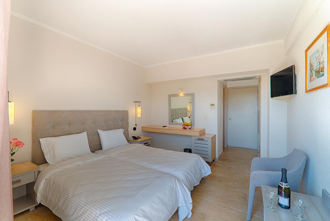 In het sfeervolle plaatsje Dassia is Hotel Livadi Nafsika te vinden, rustig gelegen maar toch centraal. Zoek een plekje aan het zwembad wat midden in de groene tuin ligt en neem een frisse duik. Meer zin in een dagje zon en zee? Op een paar minuten loopafstand ben je al op het strand en kan je neerploffen bij een van de restaurantjes of barretjes. Het centrum van Corfu is binnen 20 minuten te bereiken met de bus, de bushalte is vlakbij. Op de kamers is niets aan te merken, deze zijn sfeervol ingericht en bieden je een fijn comfort. Je verblijft hier op basis van all inclusive dus je hoeft je deze vakantie geen zorgen te maken over koken. Heerlijk even genieten!
