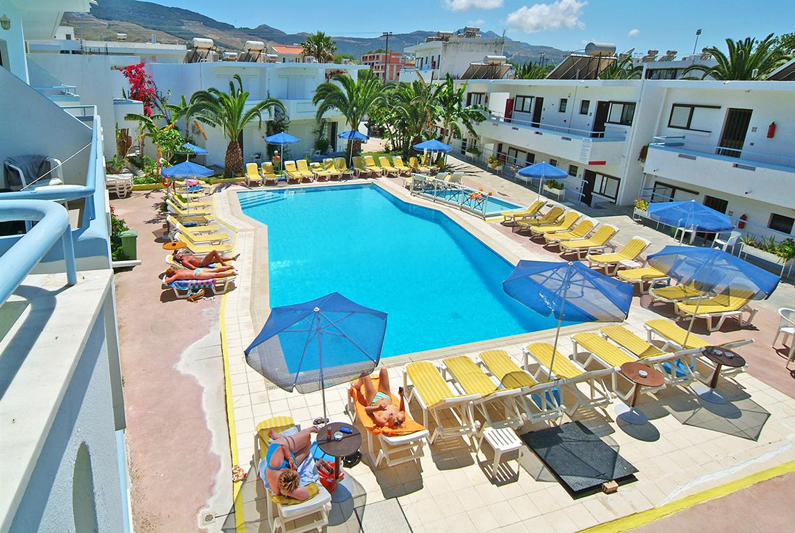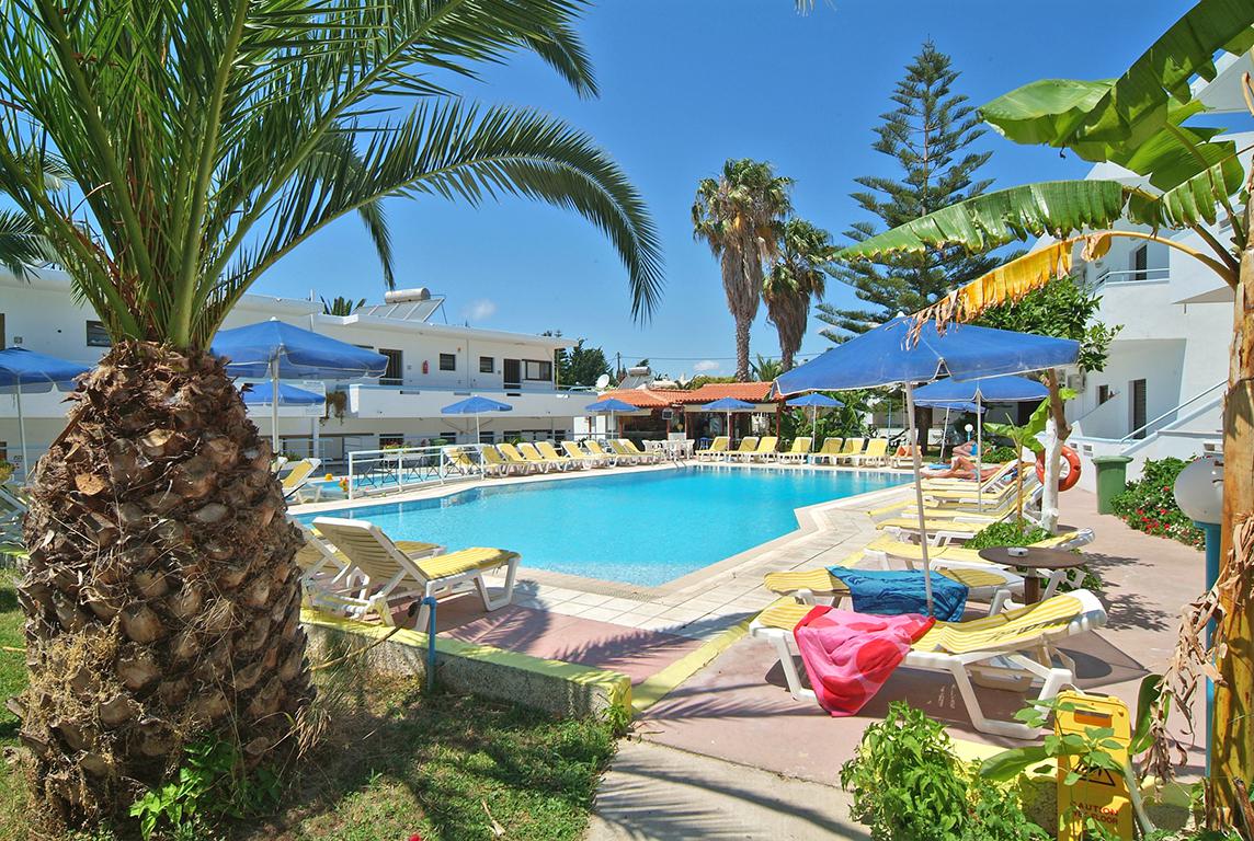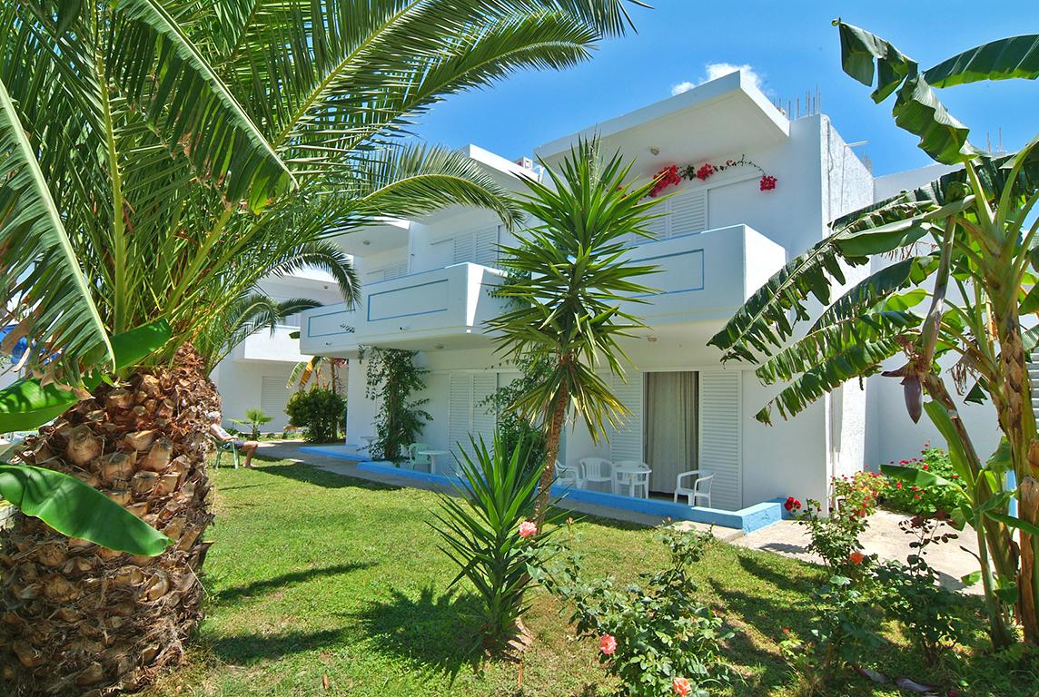 De appartementen liggen verspreid over de groene tuin en het zwembad. Omgeven door palmbomen is er ook altijd wel een plekje in de schaduw te vinden. Maar afkoelen kan uiteraard ook goed door een duik te nemen in het zwembad. Aan de bar kun je je drankje bestellen en voor een lekker hap is er een snackbar. Fijn is dat je in de directe omgeving ook veel leuke restaurantjes kunt uitproberen.