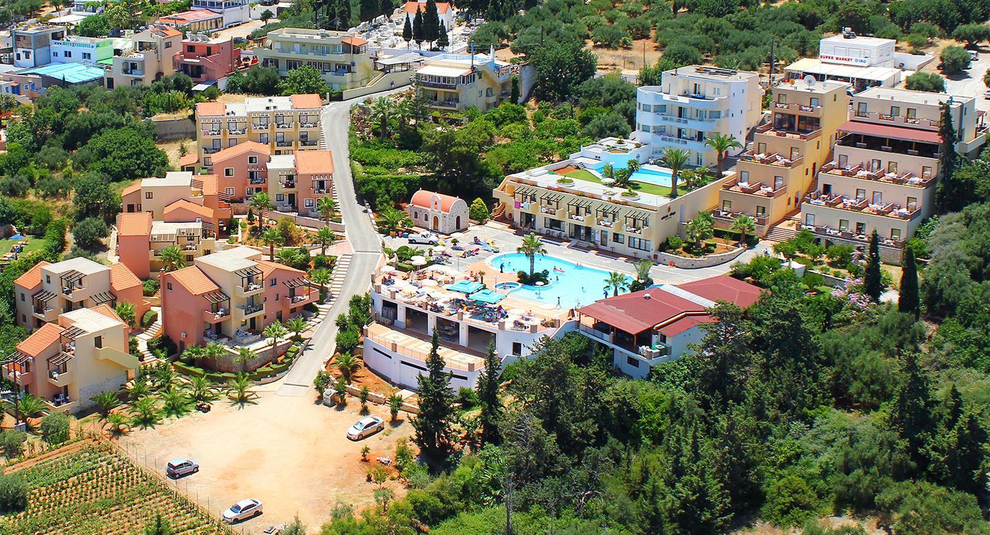 Bij Asterias Village in Koutouloufari heb je bijna overal waar je kijkt een schitterend uitzicht: over zee, de groene omgeving of over de lagergelegen stad Chersonissos. Dit komt omdat het sfeervolle complex tegen een heuvel is opgebouwd. Omdat de appartementen in lage gebouwtjes verspreid liggen over het terrein, ervaar je hier bovendien het sfeertje van een gemoedelijk vakantiedorp.