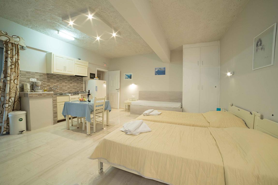 De vriendelijke familie die het complex runt zorgt voor een gemoedelijke sfeer. De kamers zijn goed verzorgd en je kunt hier heerlijk dineren bij één van de gezellige tavernes in de buurt. Je kunt er ook voor kiezen zelf een lekkere maaltijd te bereiden in je appartement, met verse ingrediënten uit de supermarkt in de buurt van de accommodatie.
