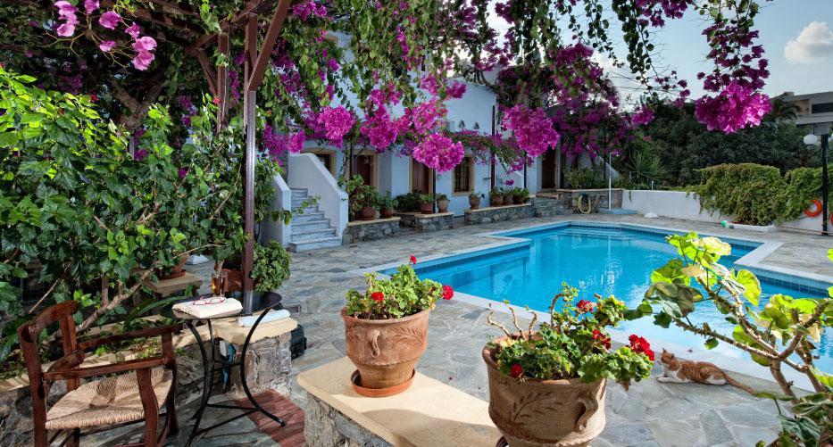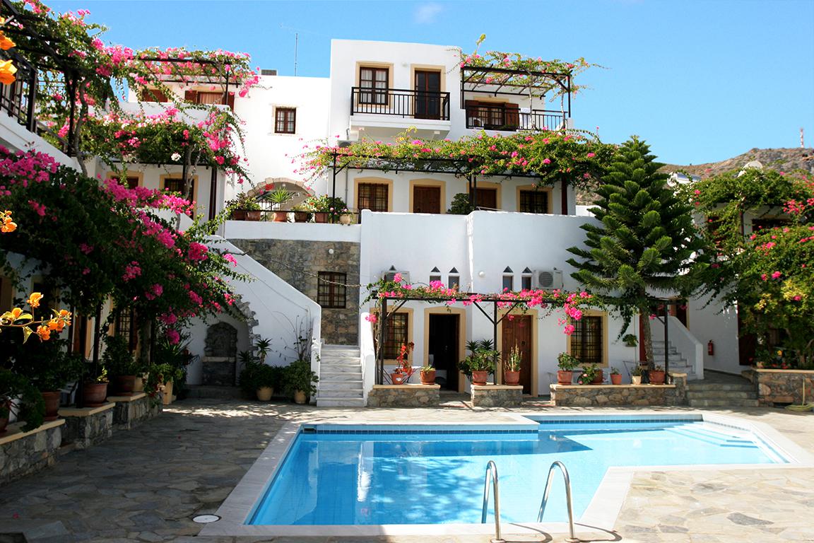 Secret Appartementen Villa Diktynna bevat alle ingrediënten om helemaal tot rust te komen. Tegen de witte, typisch Griekse appartementen kruipt een schitterende bougainville en er staan talloze bloempotten met vrolijk gekleurde bloemen. Vanuit sommige appartementen en verschillende plekken bij de accommodatie heb je een schitterend uitzicht over zee. Na zo’n tien minuten lopen kun je al een duik in dat helderblauwe zeewater nemen.