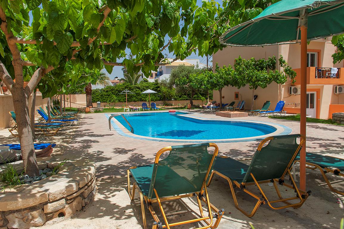 Het middelpunt van het hotel is het zwembad. In een groene tuin vol planten en mooie bomen staan de ligbedjes met parasols. Het is heerlijk om hier de dag door te brengen en te genieten van je welverdiende vrije tijd. De kamers zijn netjes en eenvoudig ingericht. Het ontbijt en diner zijn beide inbegrepen en wordt geserveerd in het restaurant van het hotel.