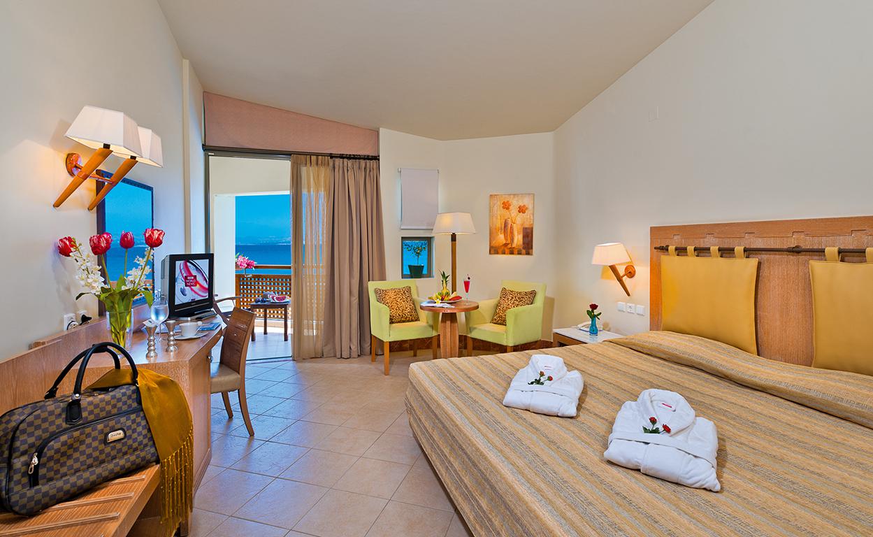 Het hotel bestaat uit 3 aparte gebouwen met het zwembad er tussenin en aangrenzend aan de zee. De poolbar is dan ook een heerlijk plekje om een refresh drankje te bestellen voor zowel strand- als zwembadgasten. De moderne kamers zijn ruim en allemaal voorzien van een eigen balkon, waarbij je ook kunt kiezen voor een uitzicht over zee.