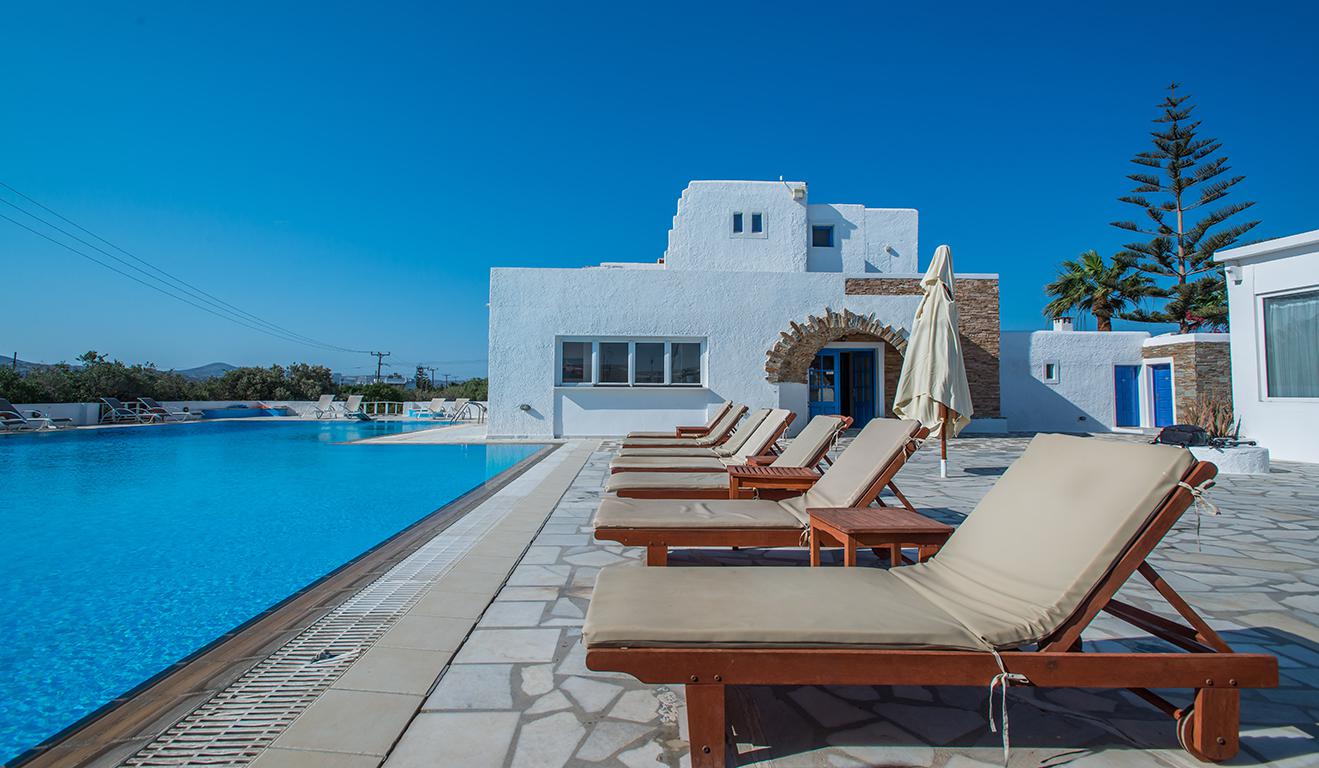 Hotel Naxos Holidays is een fijn adres voor een vakantie op het mooie Naxos. Het ligt slechts op een steenworp afstand van het zandstrand van Saint George en ook ben je zo in het centrum. Het is de ideale uitvalsbasis voor het ontdekken van mooie plekjes op dit eiland van de cycladen. Aan het einde van een heerlijke dag, is het fijn thuiskomen en bij de poolbar kun je een welverdiend drankje en hapje bestellen. Overdag is het ook goed toeven hier op een ligbedje bij het zwembad en dat maakt het een ideaal plekje voor pure rust en ontspanning in een vriendelijke sfeer.