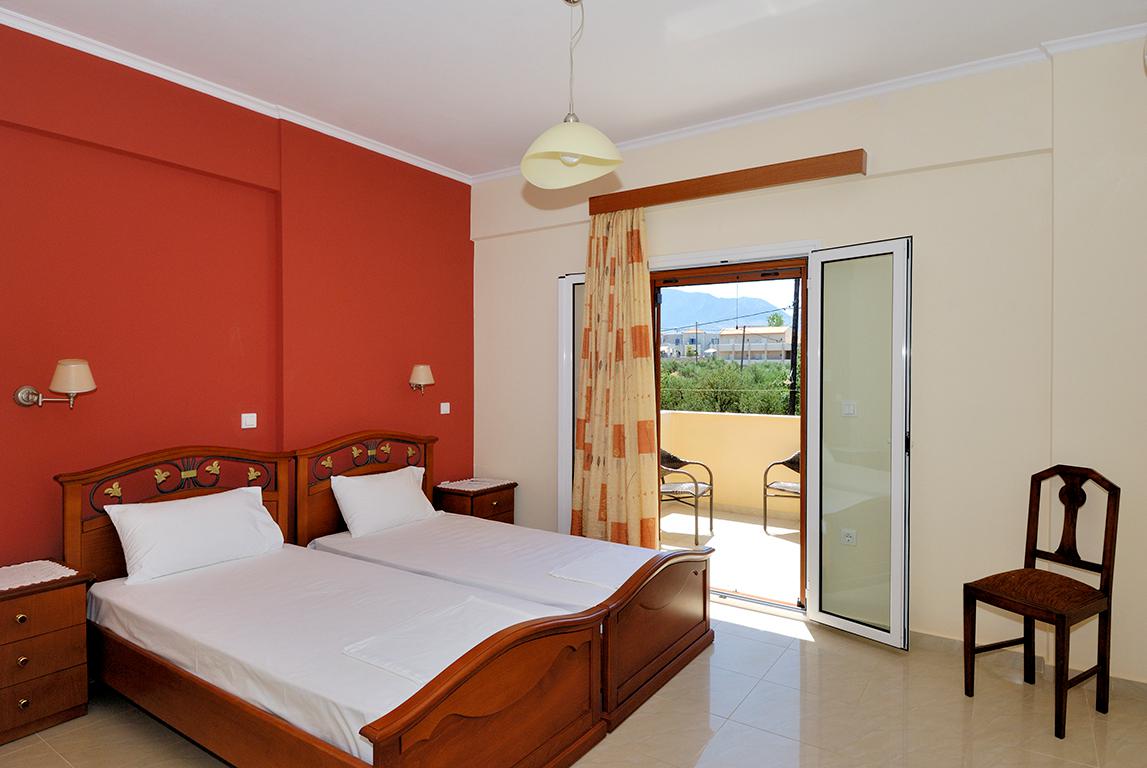Appartementen Errietta bestaat uit 8 modern ingerichte appartementen, verspreid over slechts 2 etages. Het kleinschalige karakter krijgt hiermee een extra lading. De vrolijk, pastelgekleurde muren zijn in Griekse stijl gebouwd. Zo is er gedacht aan houten louvre-deurtjes & ramen en is er scheutig gebruik gemaakt van karakteristieke boogjes. En het zwembad is nooit ver weg, waarbij je bent omgeven door een verzorgd tuintje en imposante bergen op de achtergrond. Genieten!