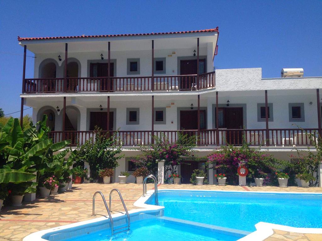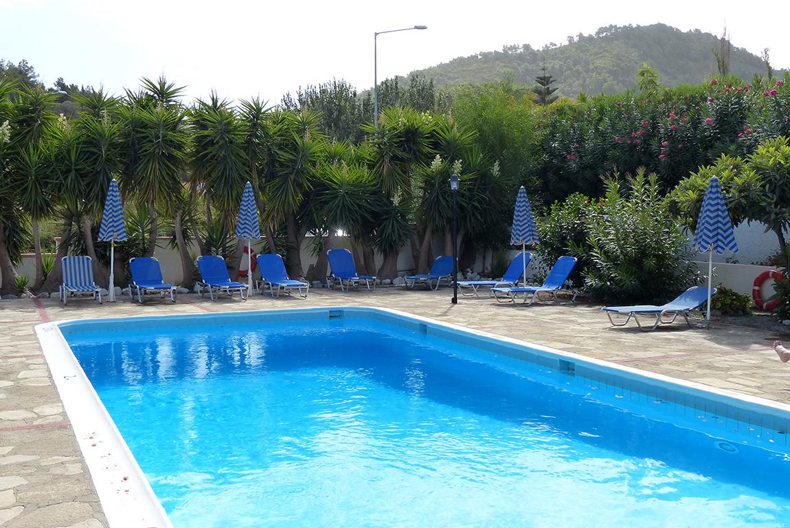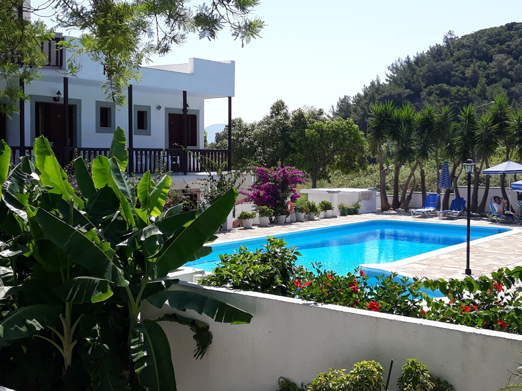 In een groene en heuvelachtige omgeving liggen Appartementen Dimitra. Een klein en intiem complex met maar tien studio’s. De inrichting is authentiek en alles wordt netjes onderhouden. De eigenaresse verwelkomt je graag en is altijd in voor een praatje of geeft je leuke tips over het prachtige eiland.