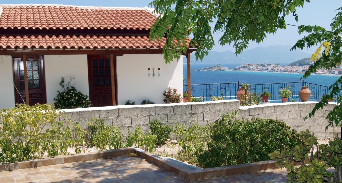 Wanneer je een duik in een zwembad wil nemen, mag dat bij de buren van Villa Themos. Maar je kunt ook via een pad in ongeveer 10 minuutjes naar beneden wandelen, om verkoeling te zoeken in zee. Eenmaal weer terug in de knus ingerichte studio kun je hier van een mooi uitzicht genieten, want wanneer ‘s avonds alle lichtjes in Kokkari aangaan krijgt dit mooie uitzicht iets betoverends.
