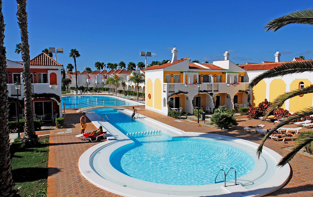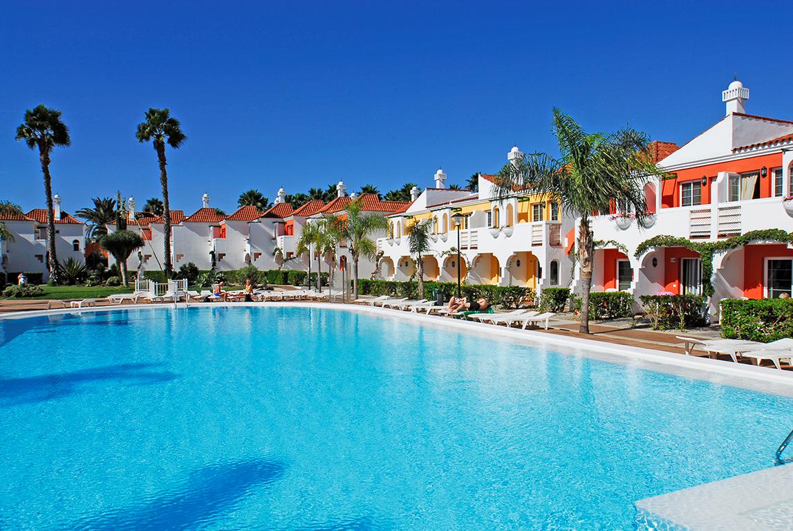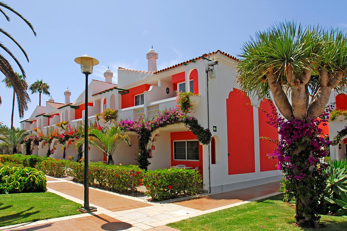 Tussen de wuivende palmbomen en fleurige bloemen en direct naast de golfbaan van Maspalomas vind je de kleurrijke Bungalows Cordial Green Golf. Het mooie zandstrand ligt op 1,5 kilometer afstand, maar met de shuttleservice ben je er zo.